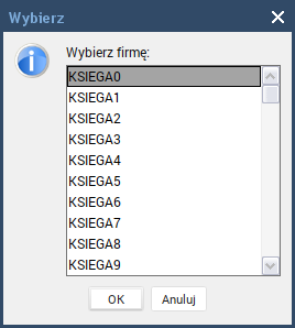 - Po zatwierdzeniu poprzez opcję w przypadku pracy na wieloksiędze DOS/Windows, zostanie wyświetlone okno z wyborem księgi, z której chcemy zaimportować dane.