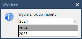 Po wybraniu roku i zatwierdzeniu opcją Ok program przeprowadzi import danych. Po wybraniu roku i zatwierdzeniu opcją Ok program przeprowadzi import danych.