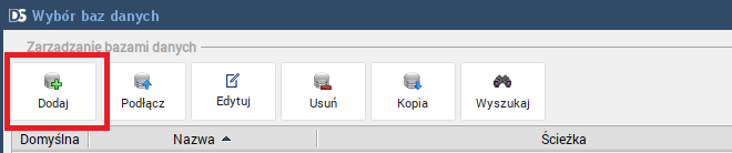 Zostanie otwarte okno Wybór baz danych, w którym można dodać kolejnych klientów poprzez opcję Dodaj.
