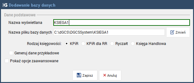 - W programie DGCS System utworzyć nową, czystą bazę danych – program sam o to poprosi przy pierwszym uruchomieniu.